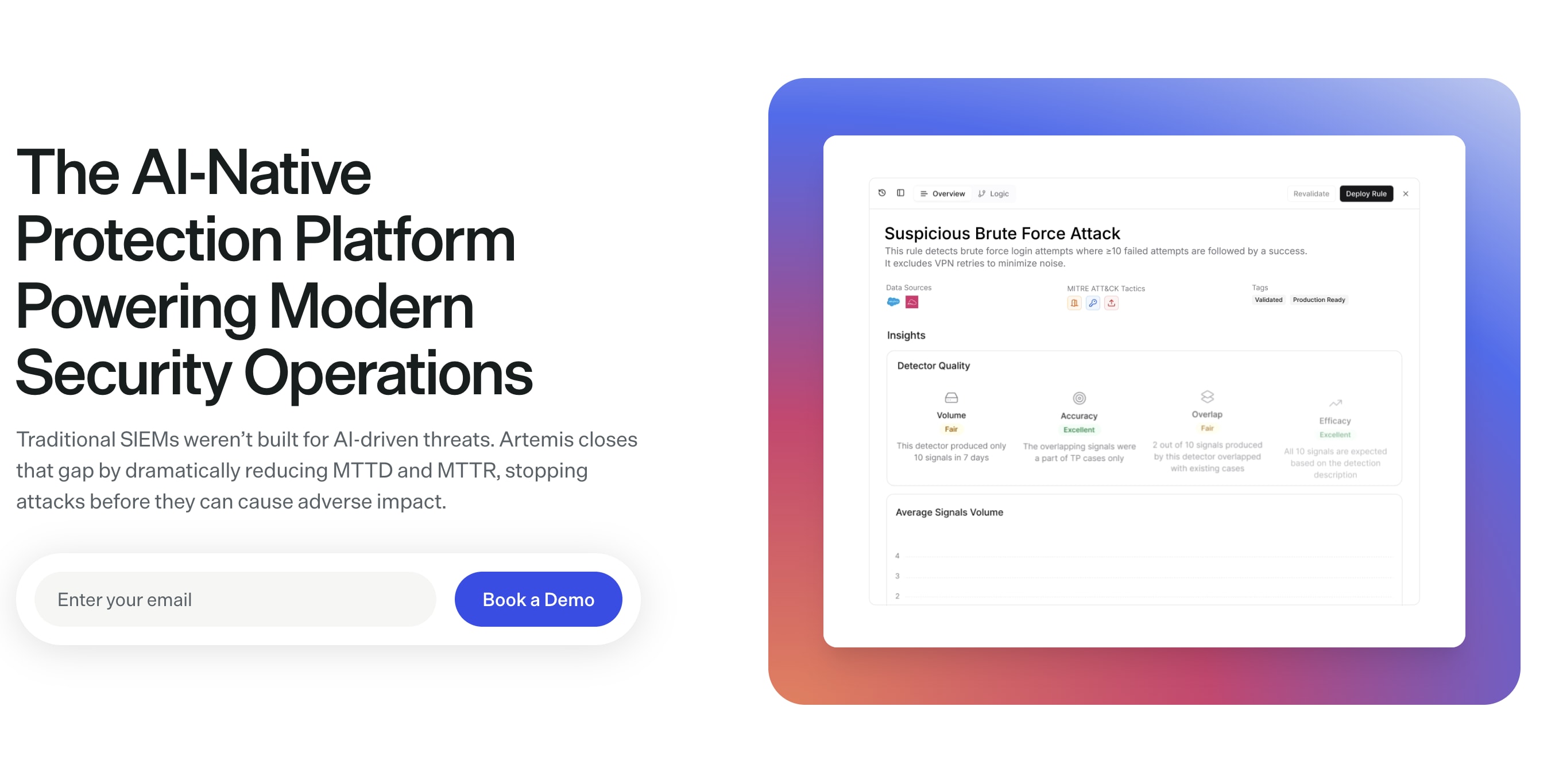 Agentic detection. Legacy platforms rely on brittle, hand-written rules. An engineer writes a detection rule : “if events A, B, & C happen in sequence, fire an alert.” It works for a couple months. Then a new service gets added, log formats change, & the rule breaks. Artemis’ detections include multi-step reasoning agents that dynamically query data, perform aggregations, & reason about context to confirm a threat before ever surfacing an alert.
