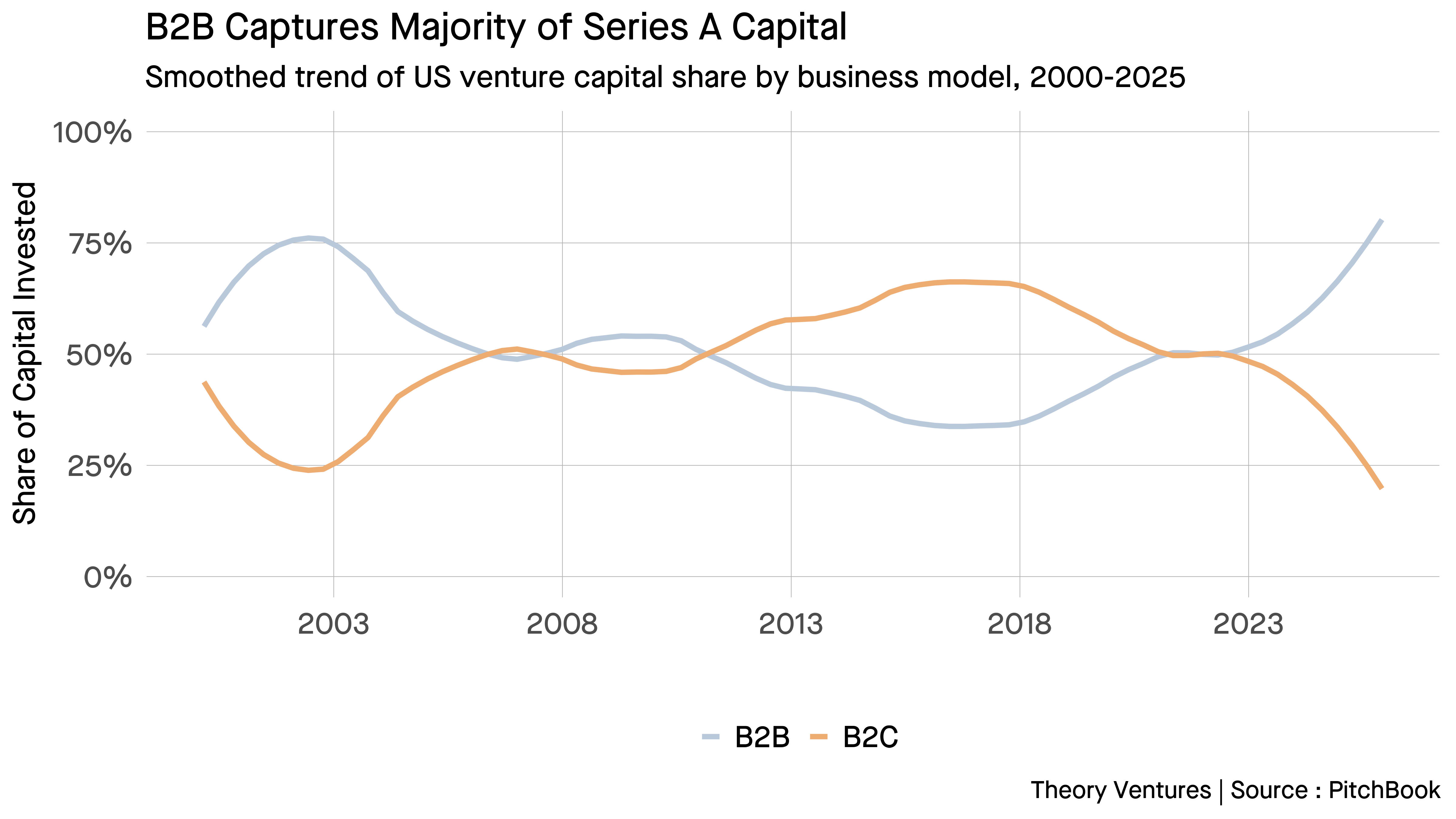 Second, the shift toward B2B rewards experience. B2B founders benefit from established relationships with potential team members, design partners & expertise selling to enterprises. These networks take years to build.