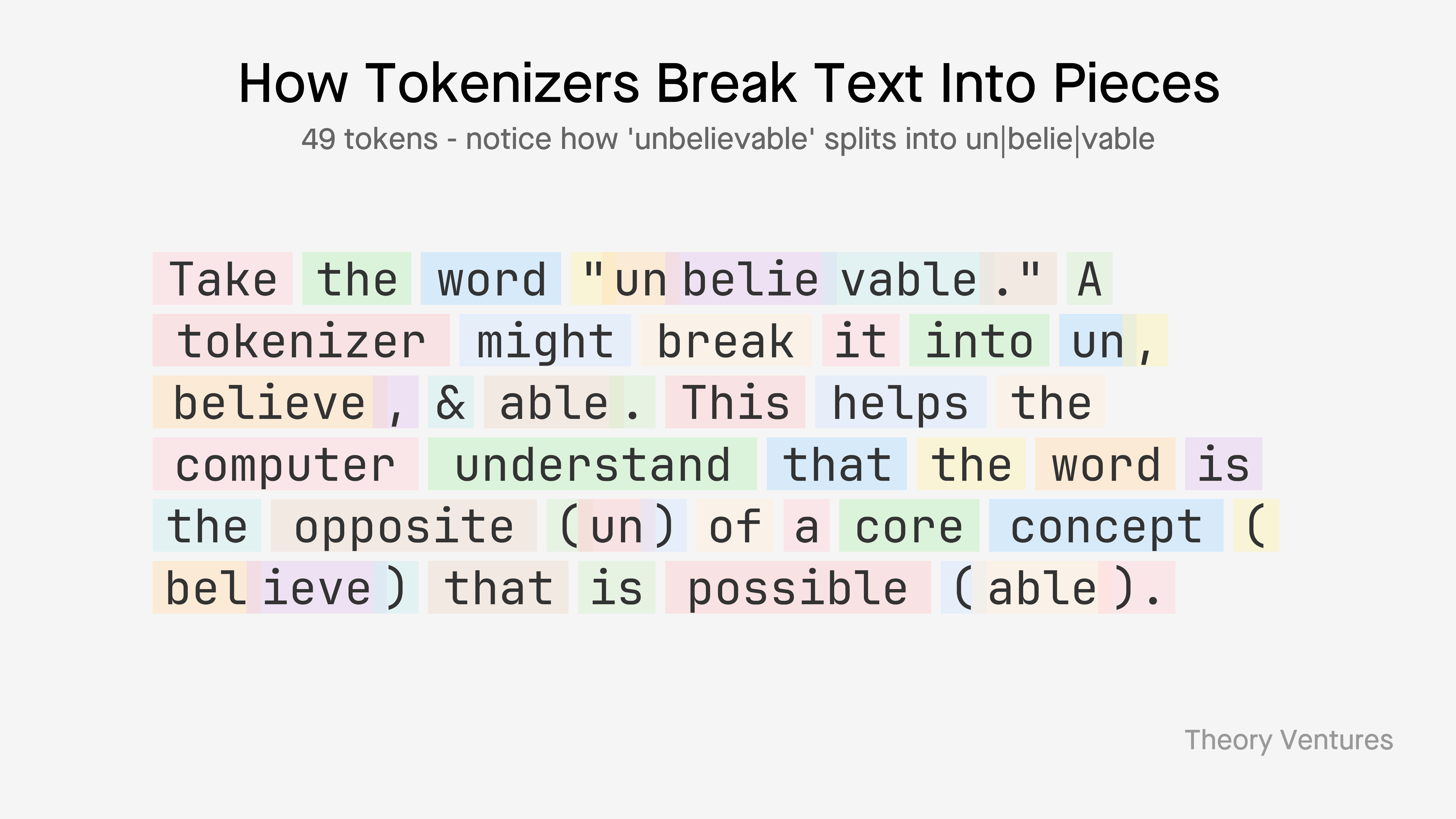 Take the word “unbelievable.” A tokenizer might break it into un, believe, & able. This helps the computer understand that the word is the opposite (un) of a core concept (believe) that is possible (able). ↩︎