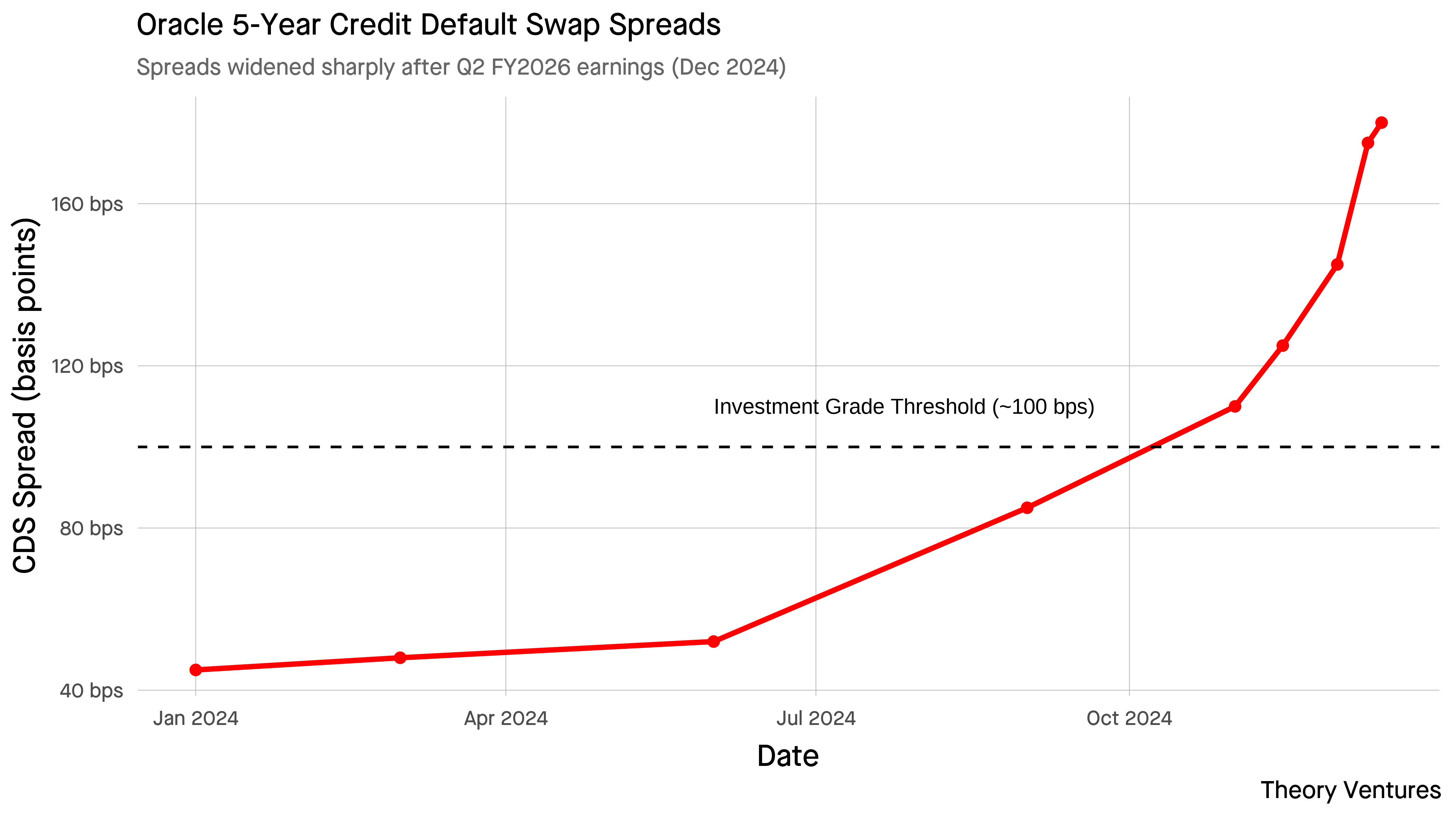 Bloomberg Terminal, Oracle 5-Year Credit Default Swap Data (accessed December 14, 2025) ↩︎