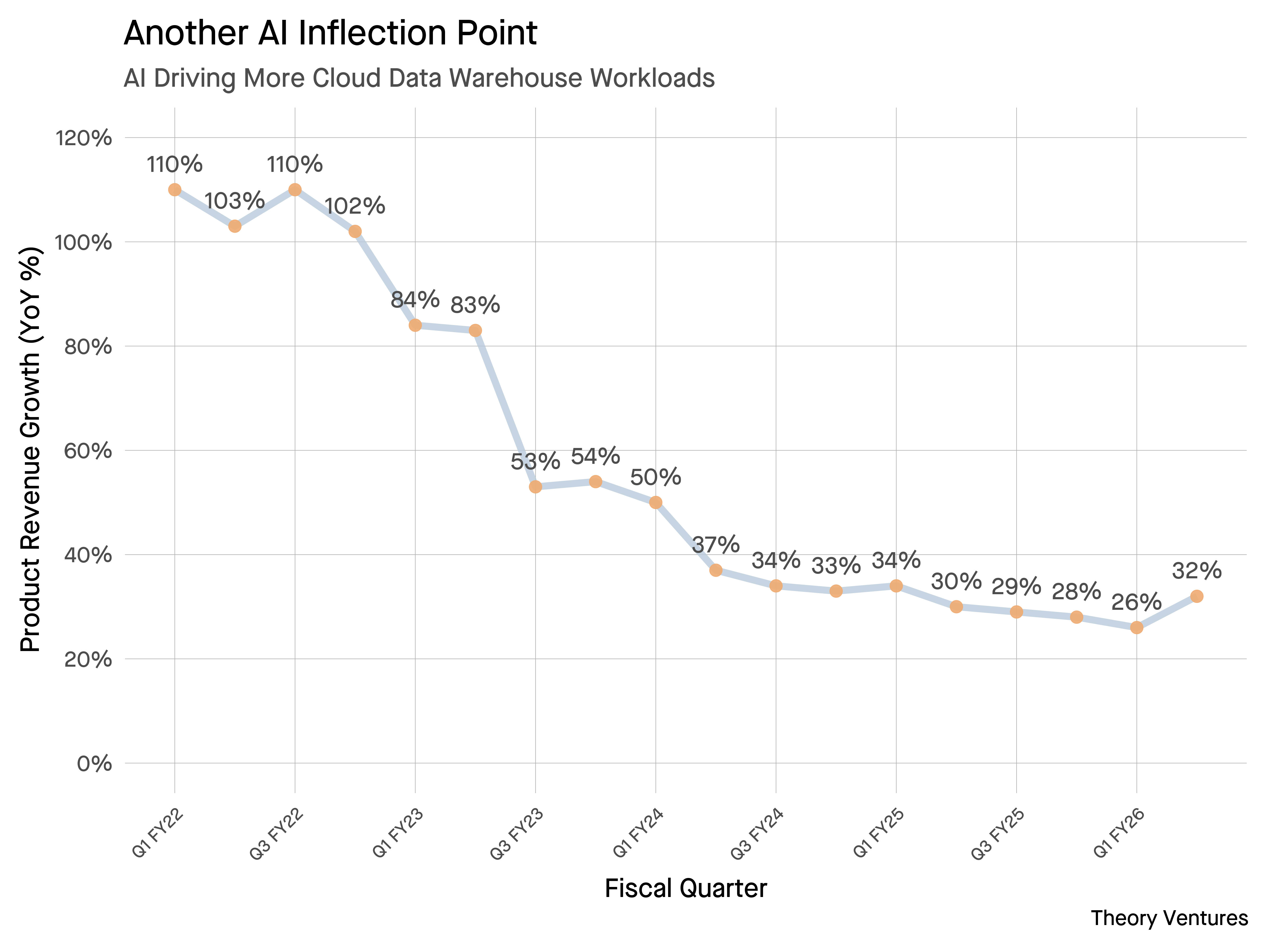 Another day, another earnings report with accelerating growth from AI. Snowflake earnings yesterday demonstrates yet again the impact of AI on a $4.4B revenue business.
