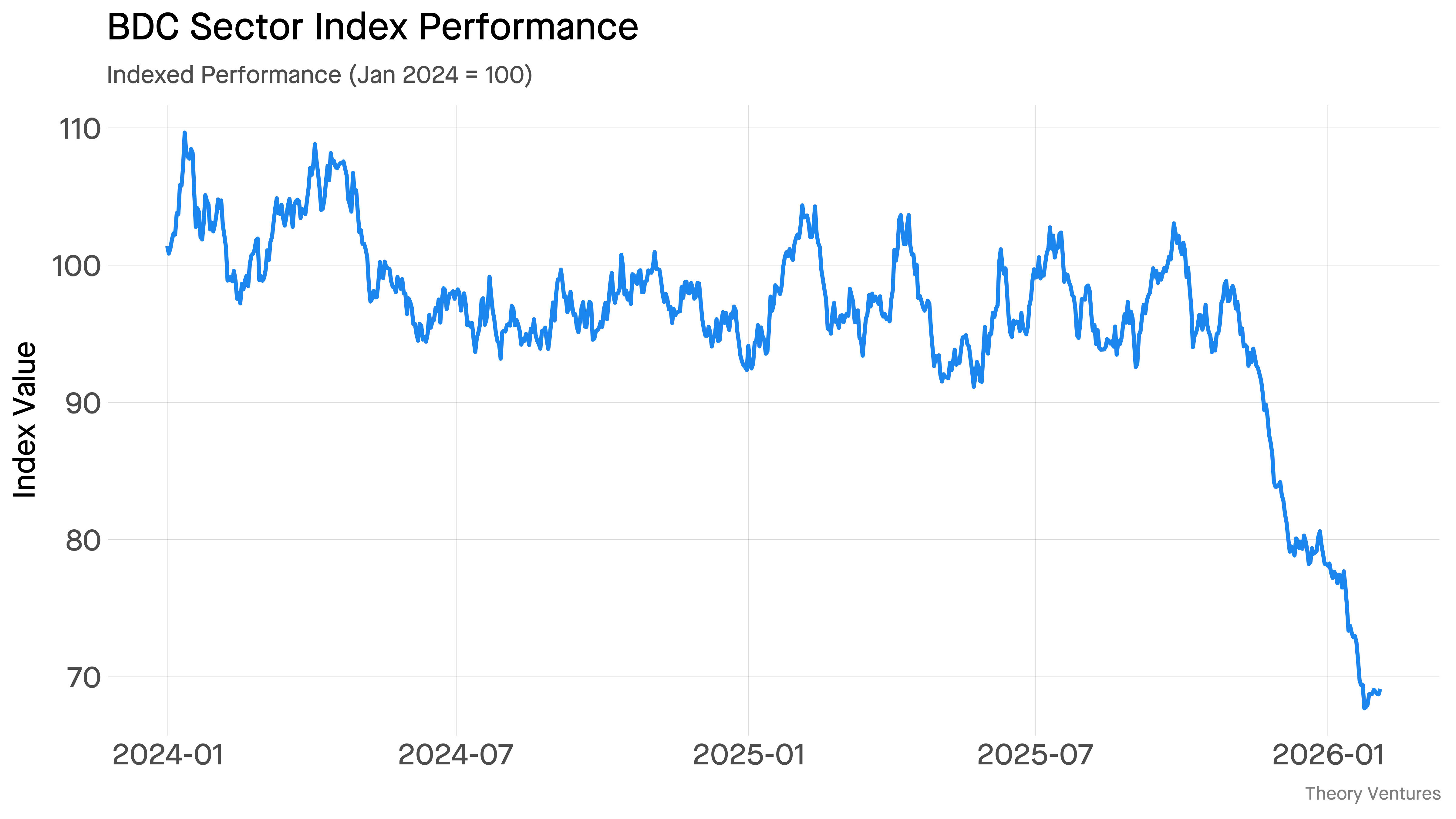 Shares of Blue Owl, Ares, & KKR dropped 9%+ on Tuesday. UBS estimates 35% of BDC portfolios face AI disruption.3